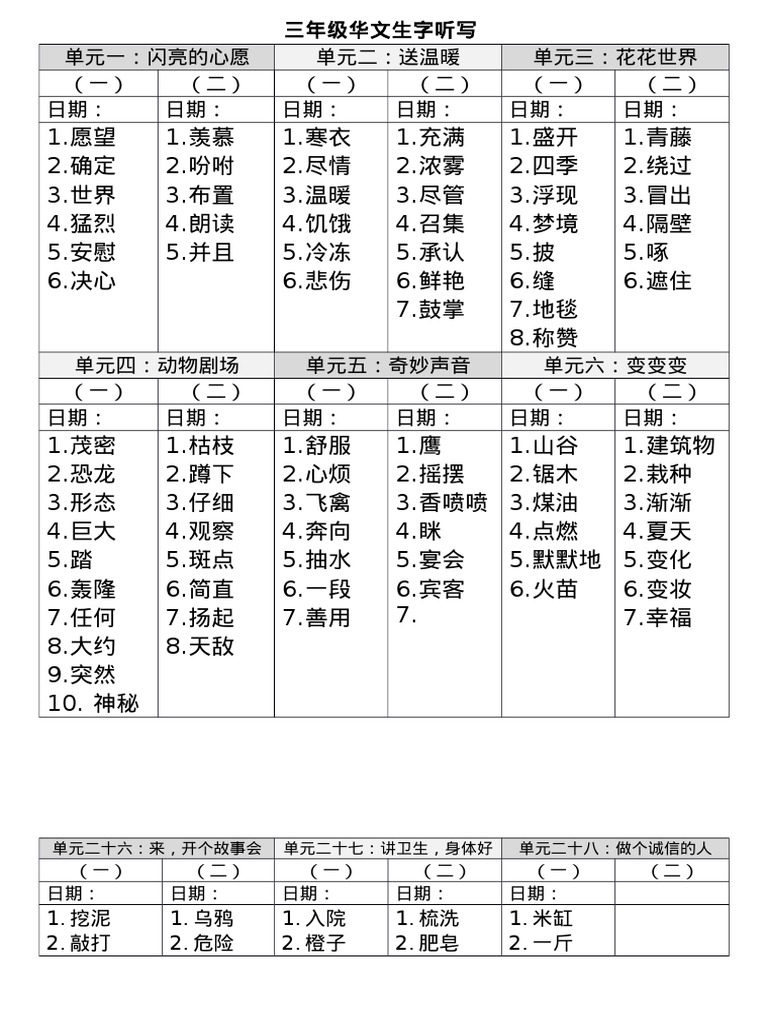 Kssr三年级华文听写1 0