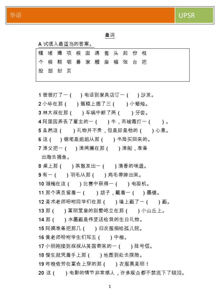 Upsr华文理解一