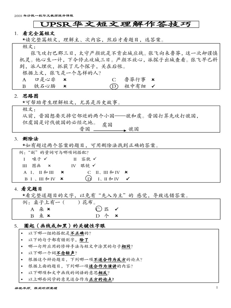 Upsr华文理解作答技巧讲座