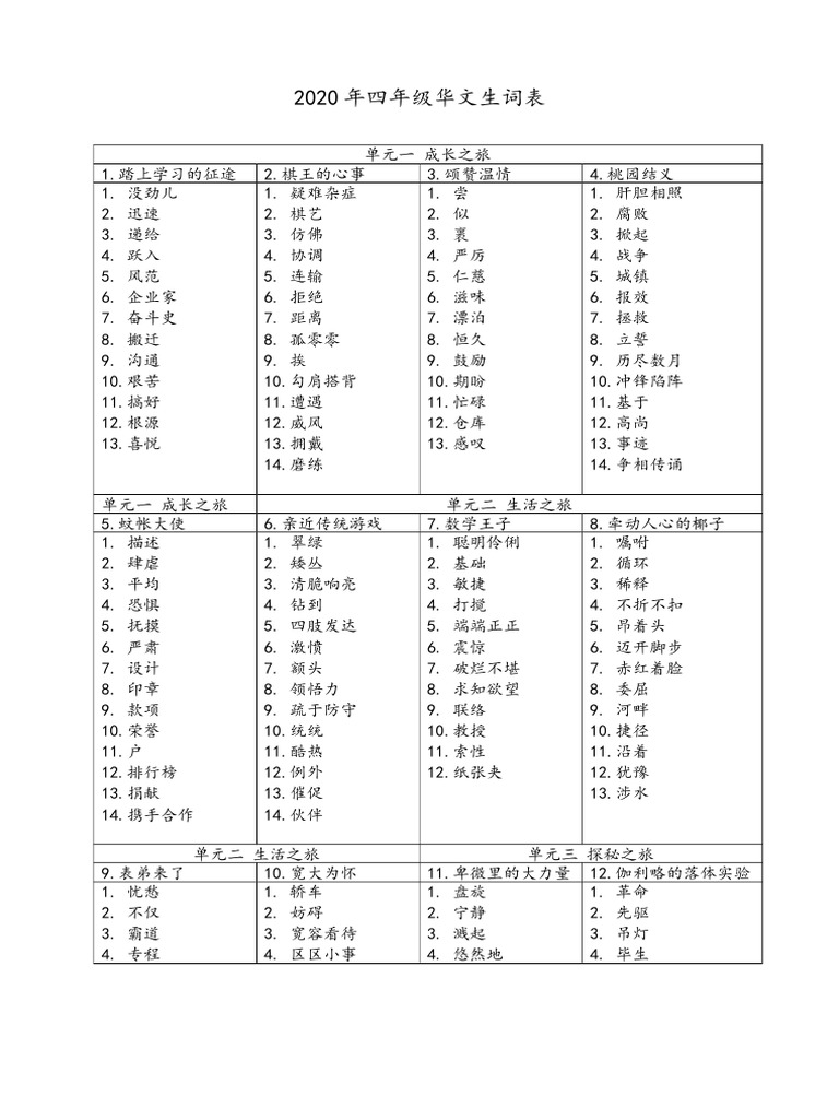 4年级华文课本指定生词中英文对照 Schoolbuddy