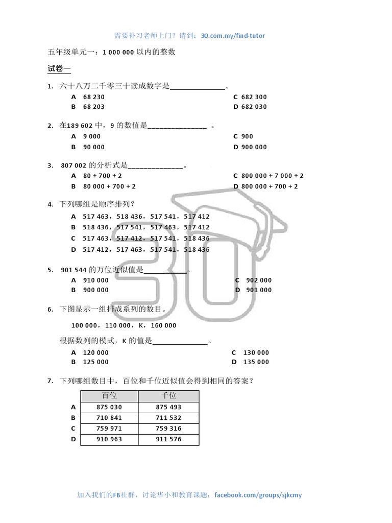 Sjkc Maths Standard 5 Chapter 1 Exersice 1 New