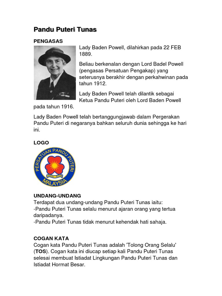 Dasar Pertubuhan Dan Undang Undang Pandu Puteri Tunas