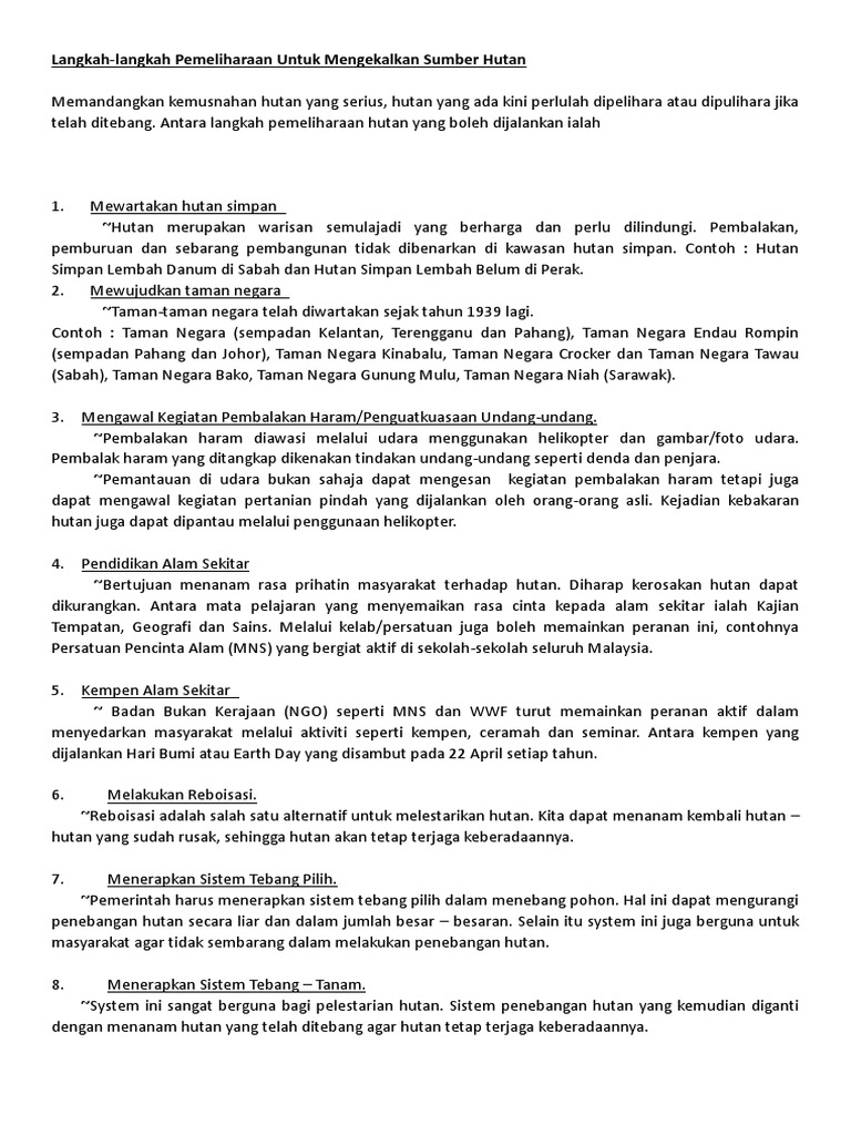 Langkah Langkah Pemeliharaan Untuk Mengekalkan Sumber Hutan