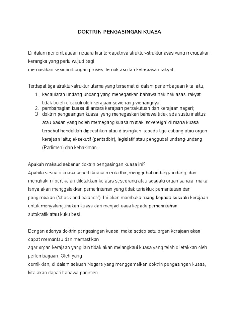 Doc Doktrin Pengasingan Kuasa Dan Pengamalannya Di Malaysia Docx Muhammad Iskandar Academia Edu