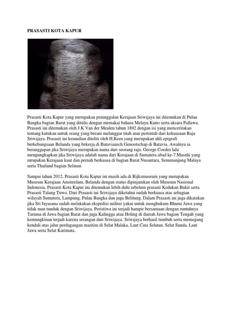 Prasasti Kota Kapur Dan Arti Penting Yang Dimilikinya Idsejarah