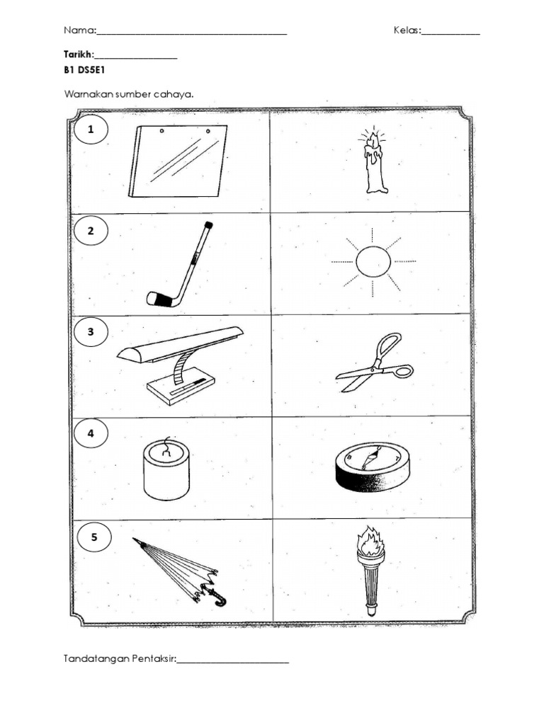 Sains Tahun 2 Terang Dan Gelap Worksheet