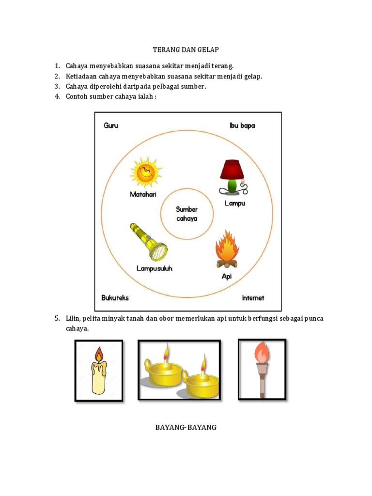 Bayang Bayang Latihan Sains Tahun 2 Terang Dan Gelap