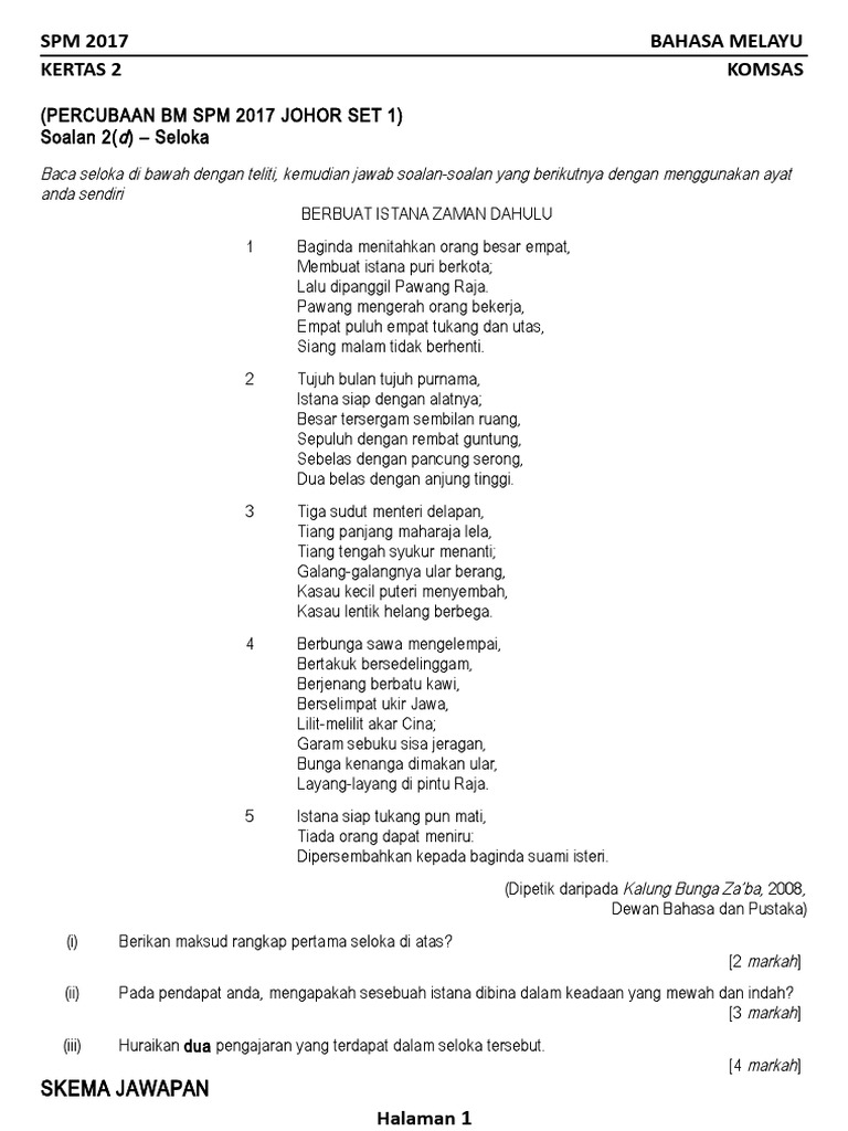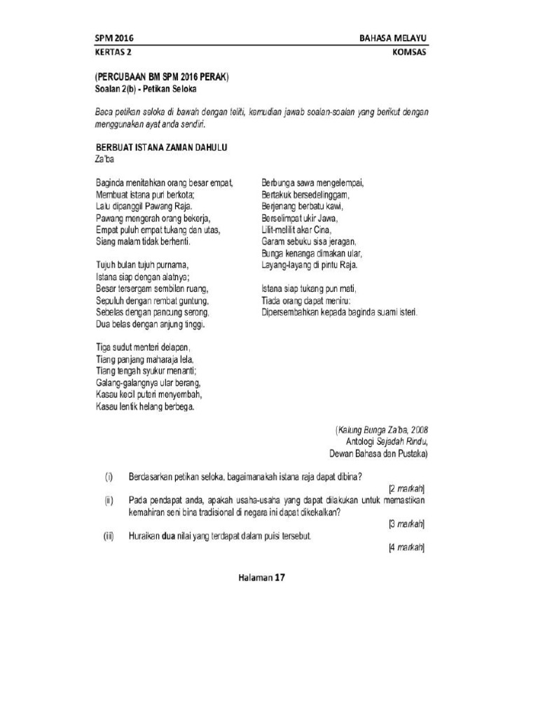 Laman Bahasa Melayu Spm Cadangan Jawapan Soalan 2 D Pemahaman Puisi Peperiksaan Percubaan Mrsm