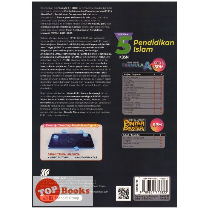 Topbooks Sasbadi Modul Aktiviti Formula A Kbsm Pendidikan Islam Tingkatan 5 2020 Shopee Singapore