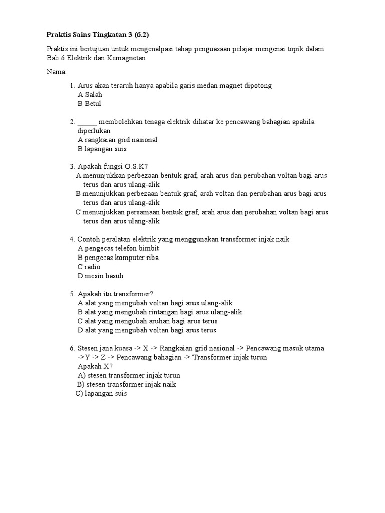 Tingkatan 3 Bab 6 Elektrik Dan Kemagnetan