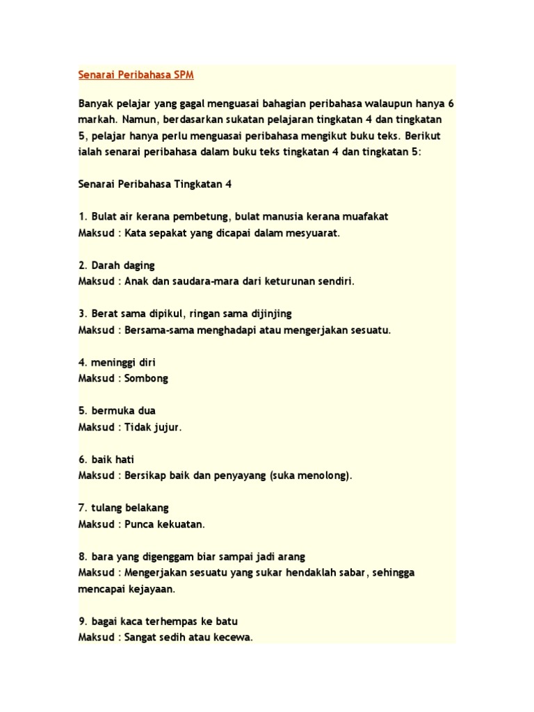 Senarai Peribahasa Spm