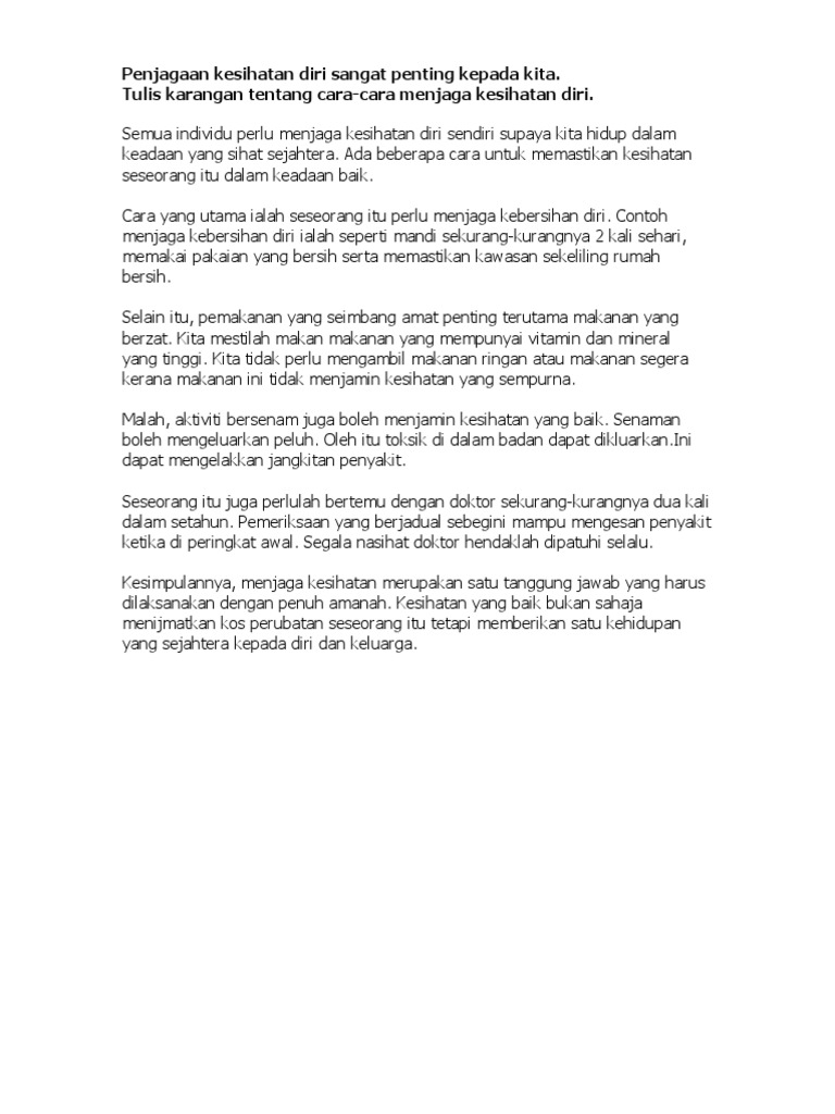 Cara Cara Menjaga Kesihatan Diri Karangan Docx