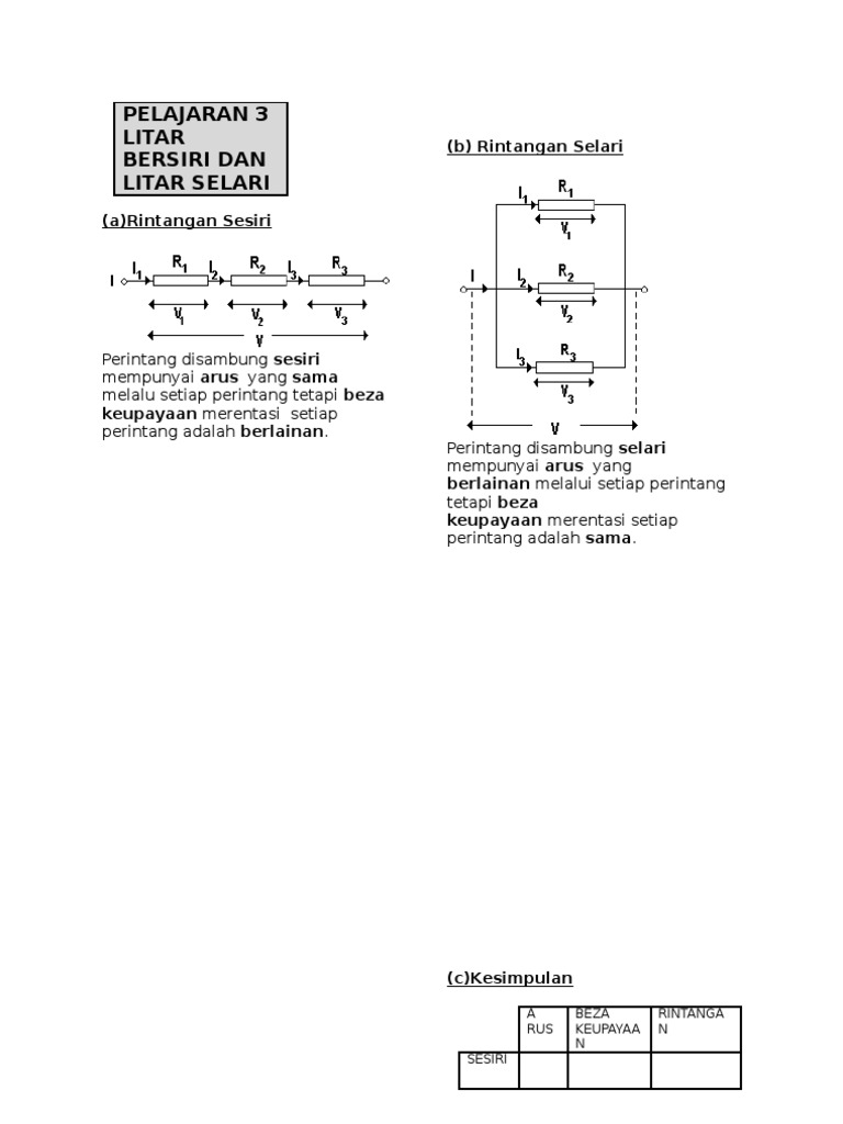 Kemahiran Hidup Analisis Litar Siri Litar Selari Dan Litar Siri Selari