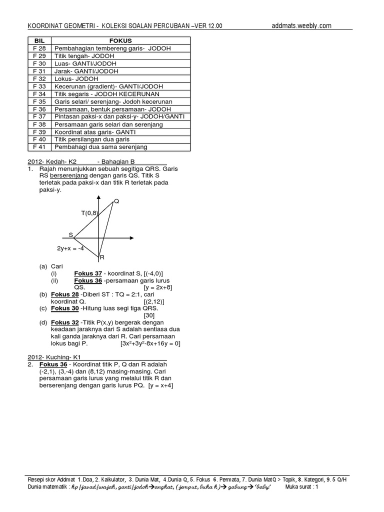 Matematik Tambahan Spm Tingkatan 4 Geometri Koordinat Add Maths Form