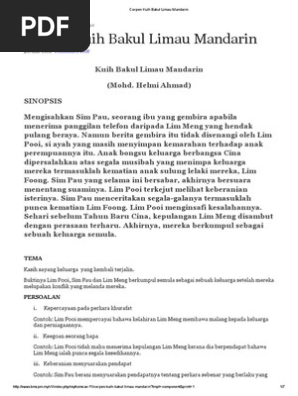 Sinopsis Cerpen Kuih Bakul Limau Mandarin Tingkatan 1