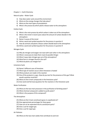 Igcse Chemistry Chapter 1 Revision Questions Teaching Resources