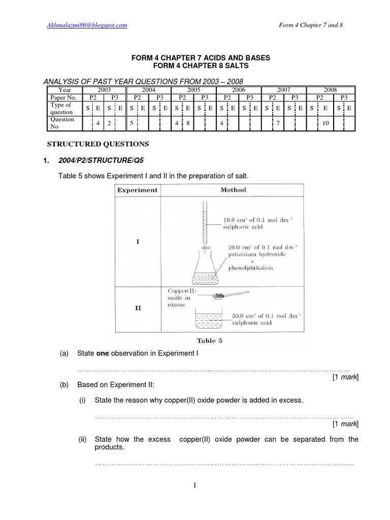 Spm Form 4 Chemistry Chap 7 8 Exercises Salt Chemistry Precipitation Chemistry