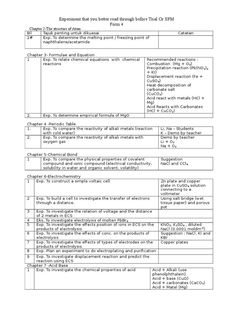 Peka Experiment List For Spm Chemistry Form 4 Chapter 3