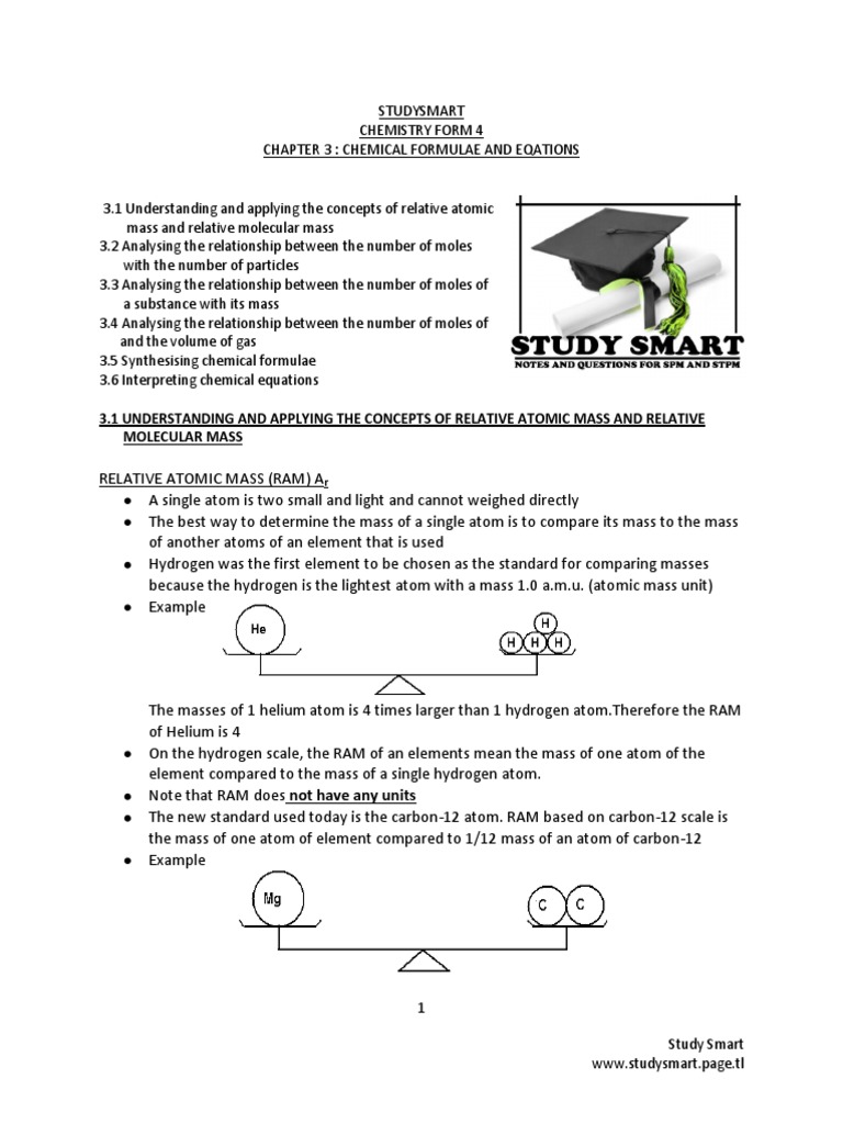 Chemistry Spm Form 4 Short Notes Chapter 3 Chemical Formulae And Equations Mole Unit Molecules