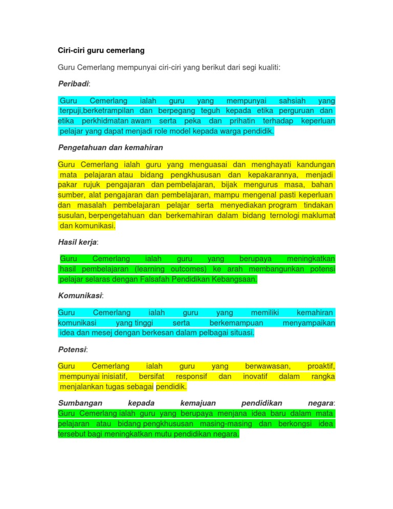 Ciri Ciri Guru Cemerlang Dari Aspek Personaliti Dan Pengajaran Pdf Document