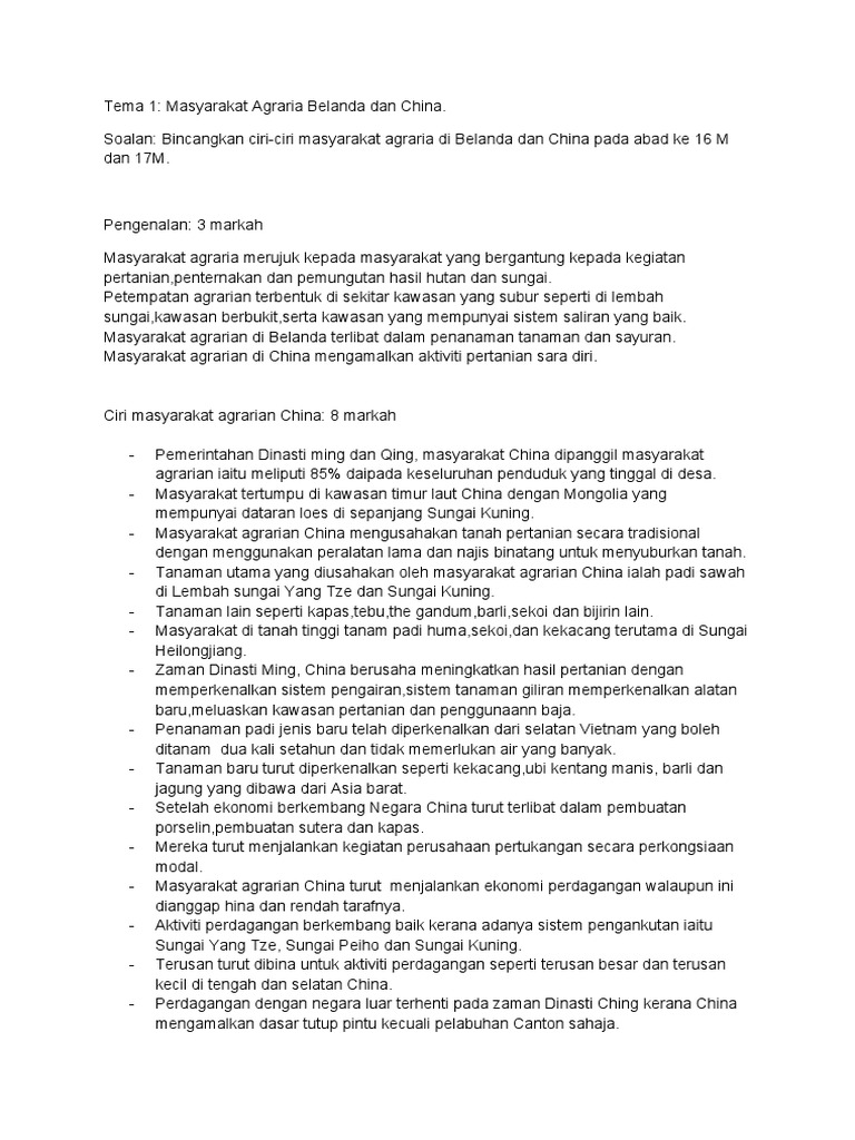 Stpm Sejarah Ciri Ciri Masyarakat Agraria Di Belanda