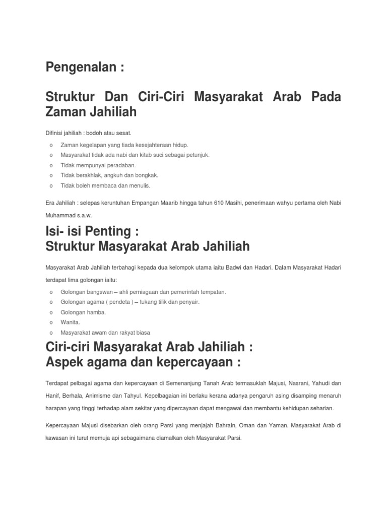 Jelaskan Struktur Dan Ciri Ciri Masyarakat Arab Pada Zaman Jahiliah Pengenalan