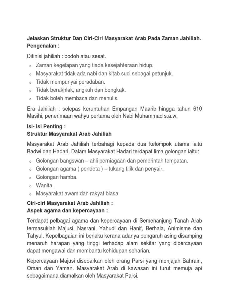 Doc Contoh Jawapan Esei Ciri Ciri Zaman Jahiliah Mohd Asri Omar Academia Edu