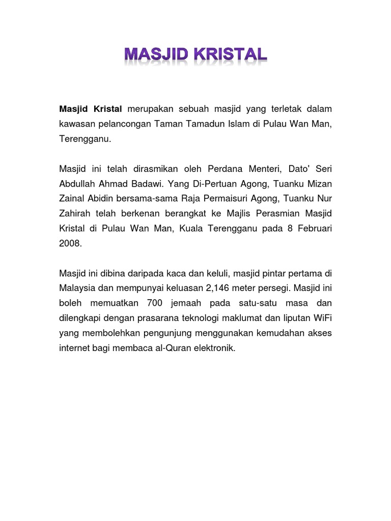 Doc Sejarah Penubuhan Masjid Kristal Perasmian Pirman Mohd Hasbi Academia Edu