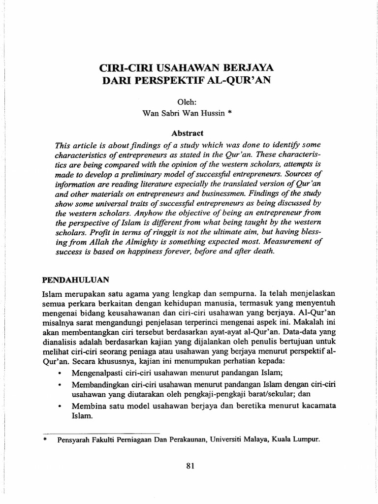 Pdf Ciri Ciri Akhlak Usahawan Muslim Berjaya Dan Hubungannya Dengan Cara Pengembangan Harta Serta Matlamat Hidup Menurut Perspektif Al Qur An