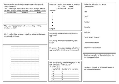 Dna Continuous And Discontinuous Variation Revision Mat By Bethany Johnson