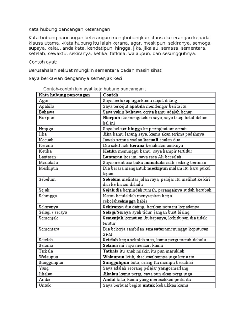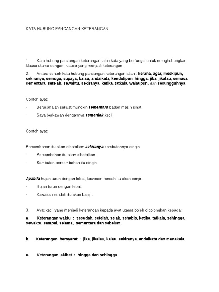Contoh Ayat Kata Hubung Pancangan Keterangan