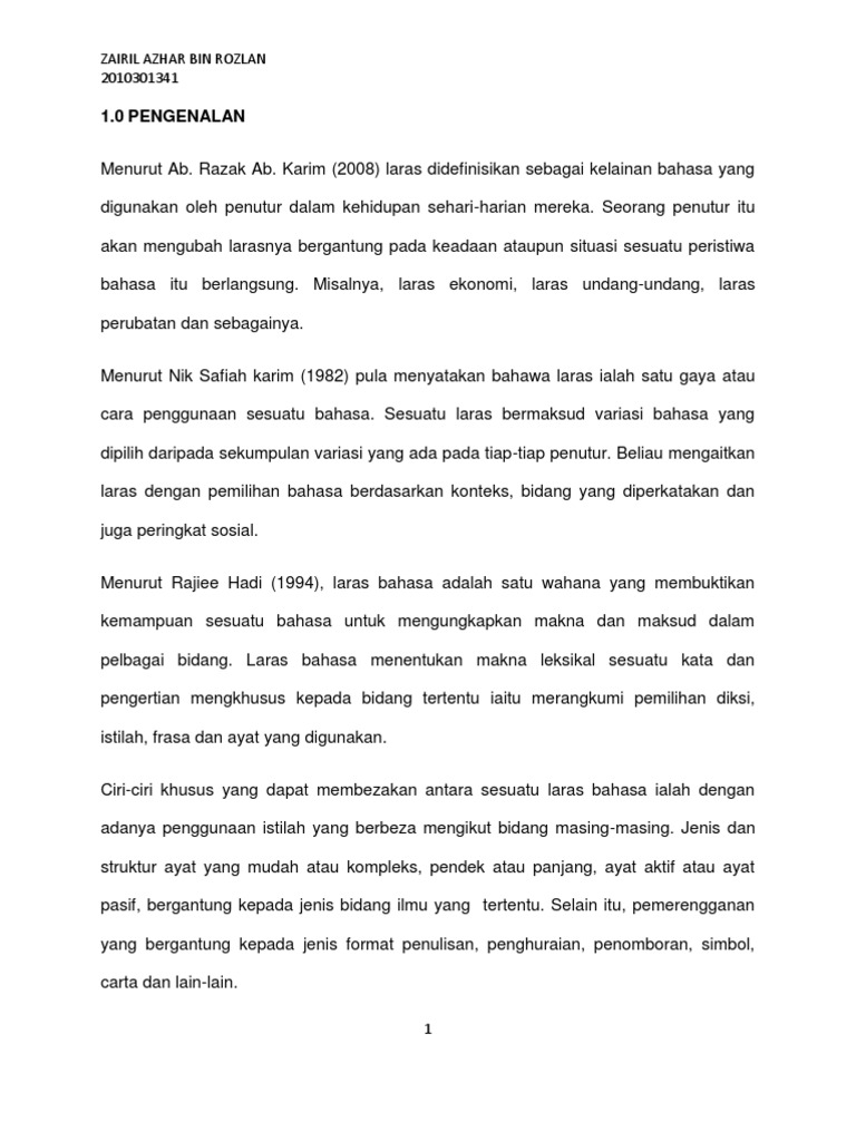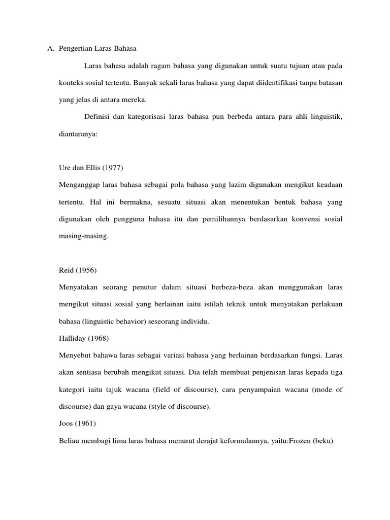 Jenis Jenis Dan Ciri Ciri Laras Bahasa