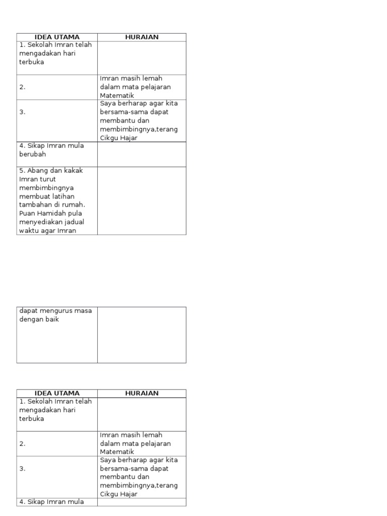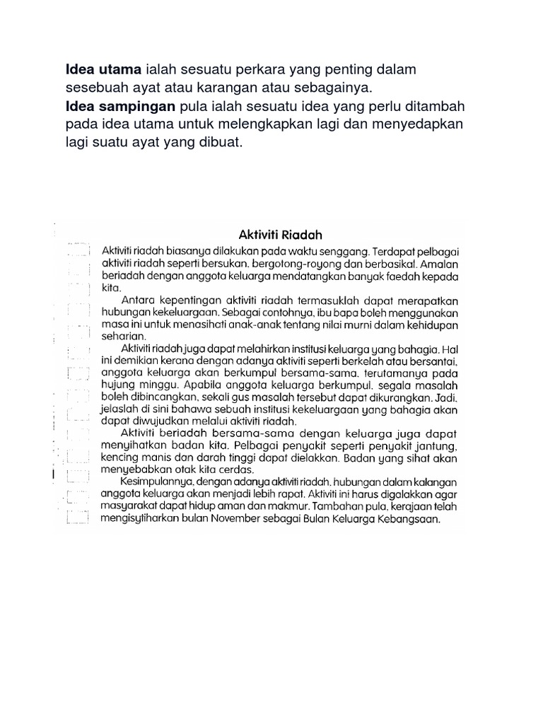 Contoh Idea Utama Dan Idea Sampingan Tahun 3