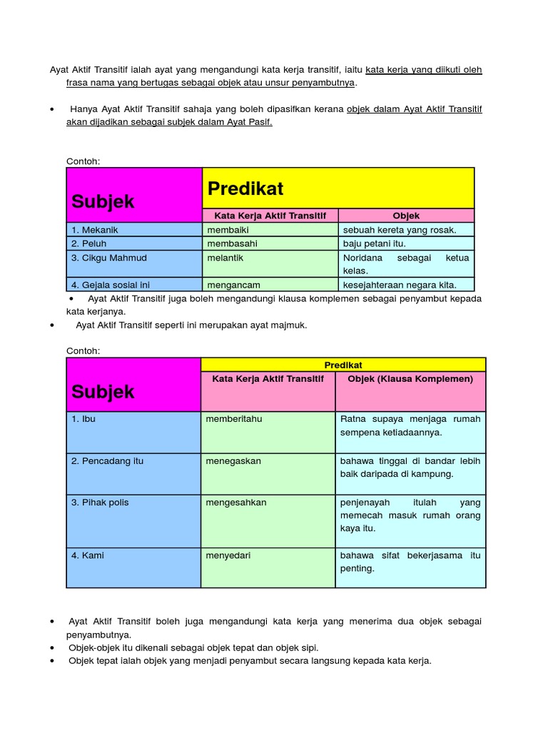Nota Ringkas Kata Kerja Aktif Transitif Tahun 2 Pages 1 6 Text Version Anyflip