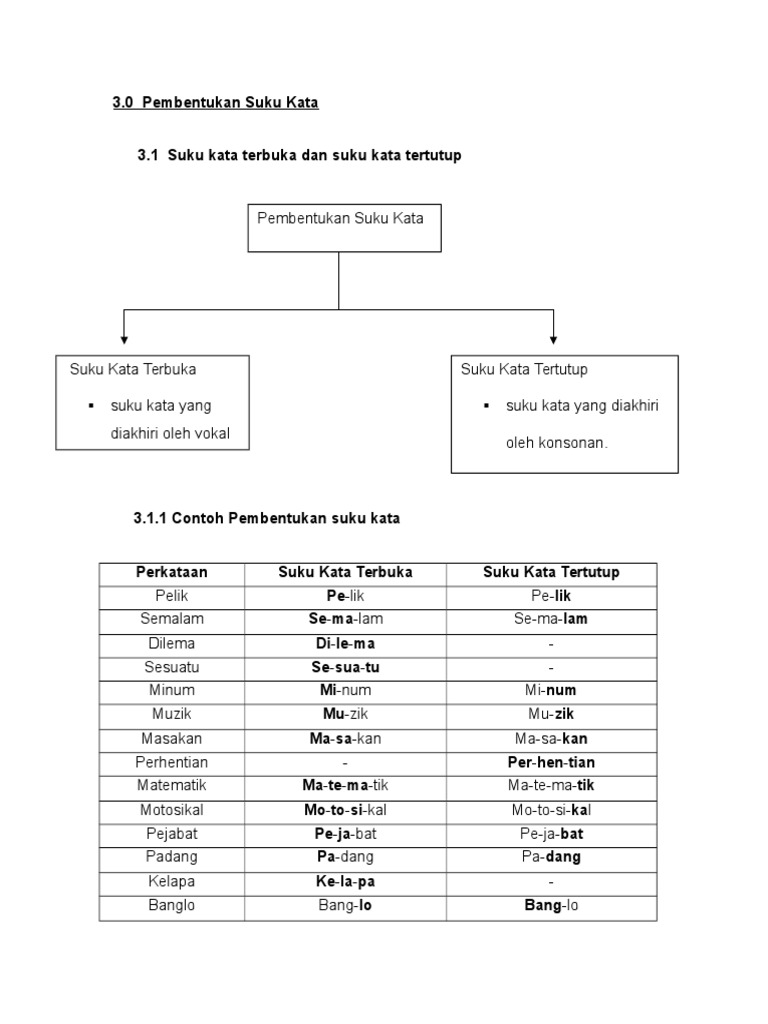 Contoh Perkataan Suku Kata Terbuka Dan Tertutup