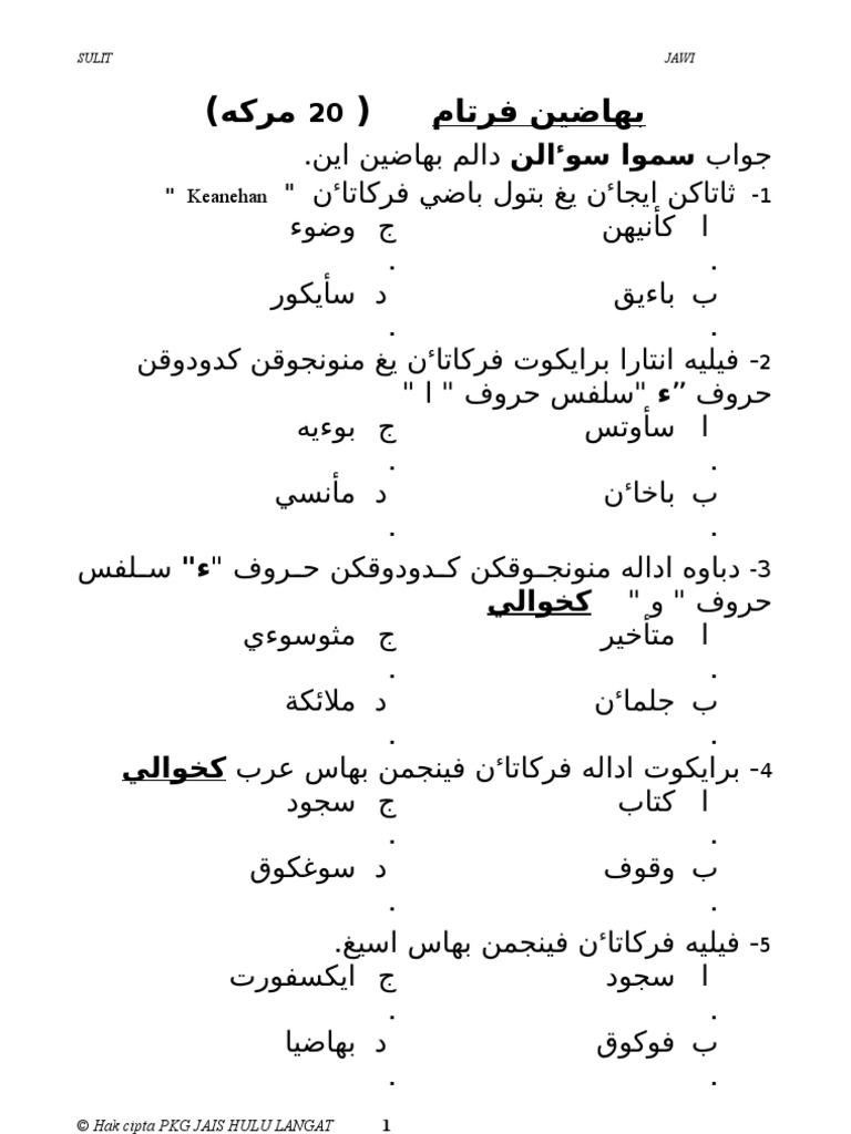 Contoh Soalan Jawi Tingkatan 1 Kecemasan R