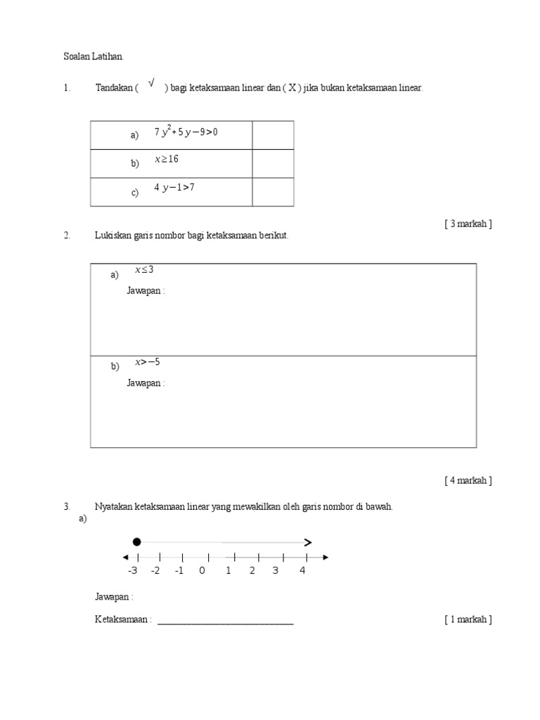 Contoh Soalan Ketaksamaan Linear Tingkatan 1