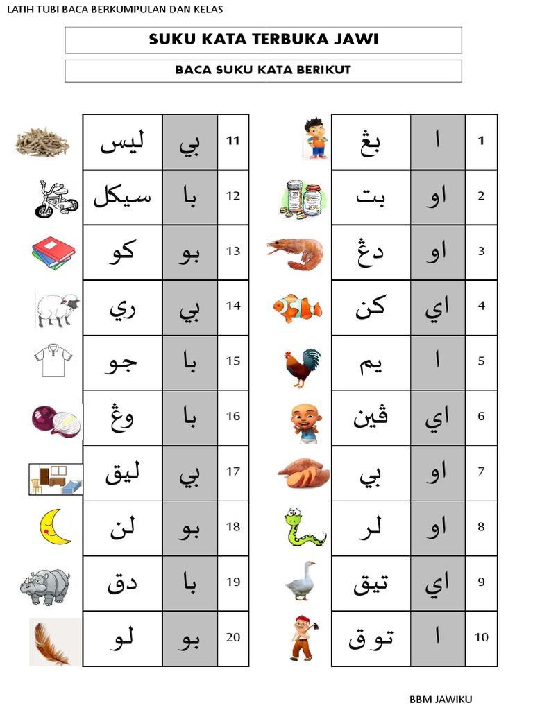 Contoh Suku Kata Tertutup Jawi Tahun 1