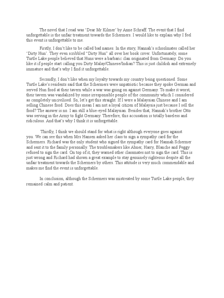 318698212 Dear Mr Kilmer Docx Using The Details In The Novel You Have Studied Write About The Most Memorable Episode In The Novel Provide Evidence Course Hero