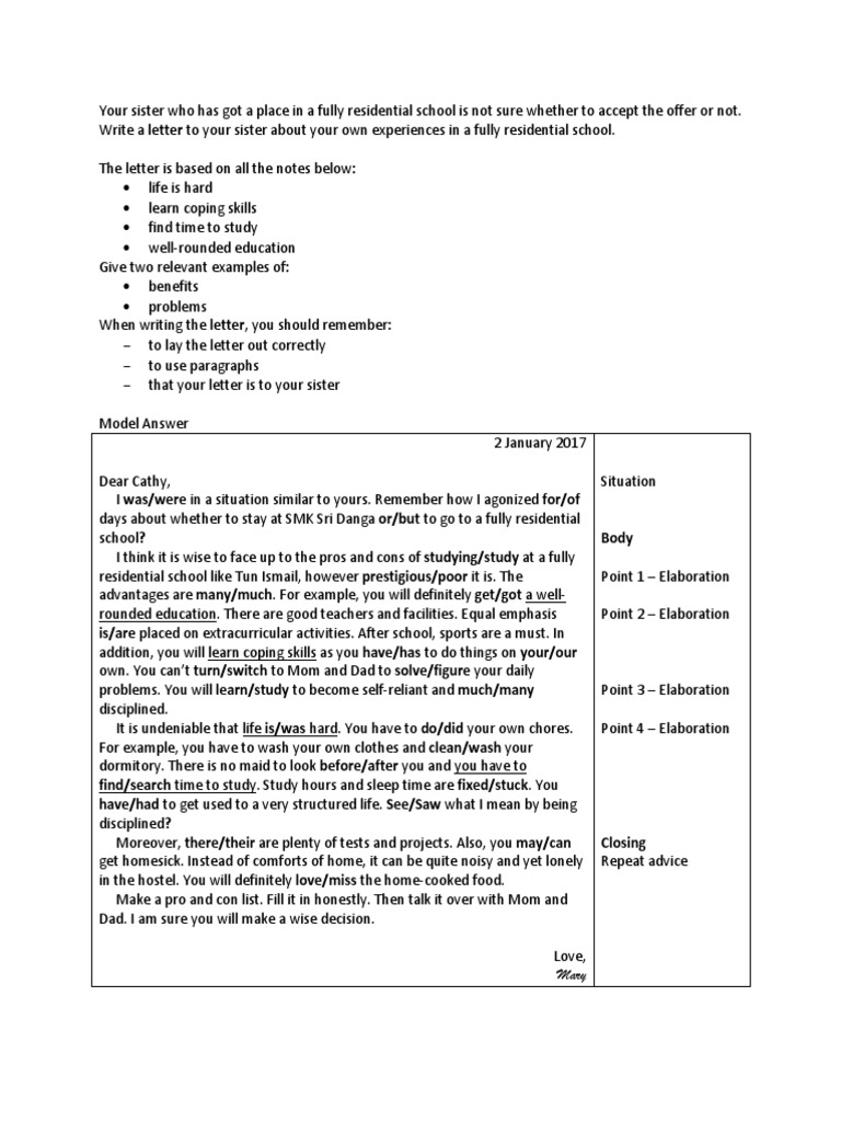 Spm Directed Writing Informal Letter Exercise Applied Psychology Cognition
