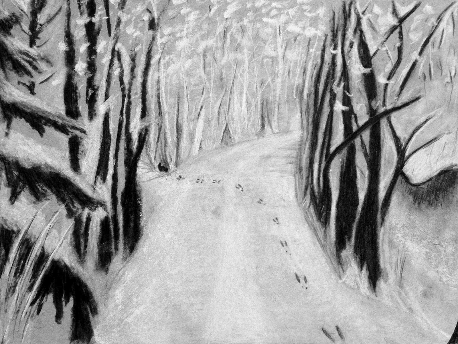 The New Hope Art Gallery High School Art Charcoal Drawings Inspired By Robert Frost Stopping By Woods On A Snowy Evening