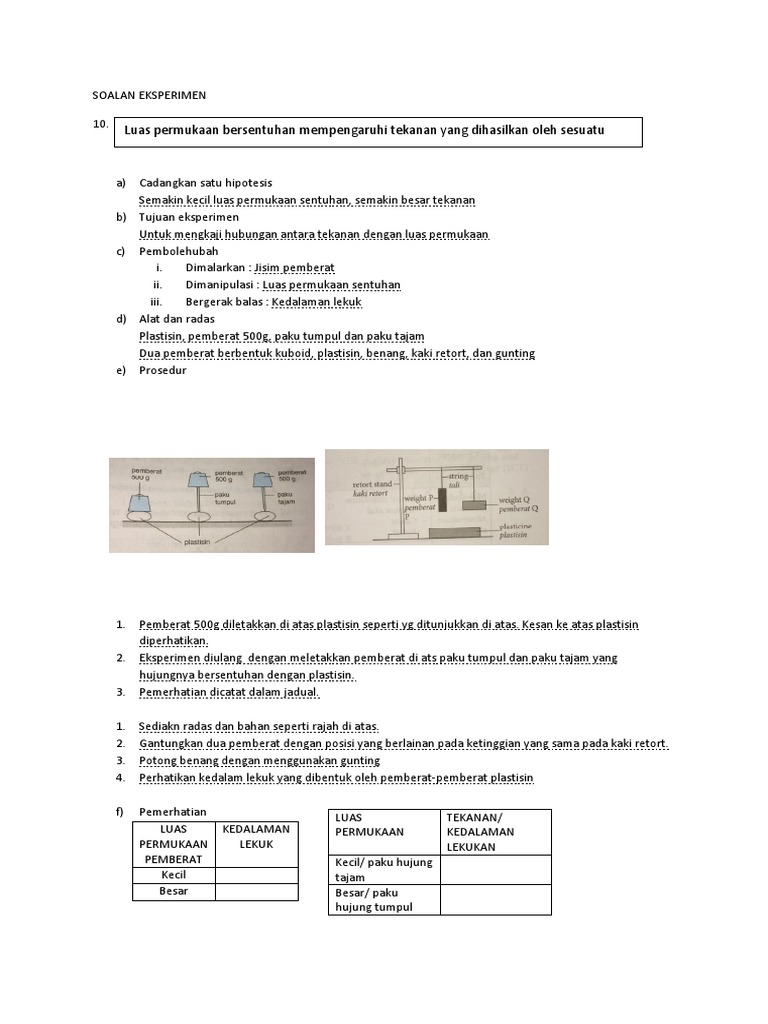 Eksperimen Sains Tingkatan 5 Bab 5 Tekanan