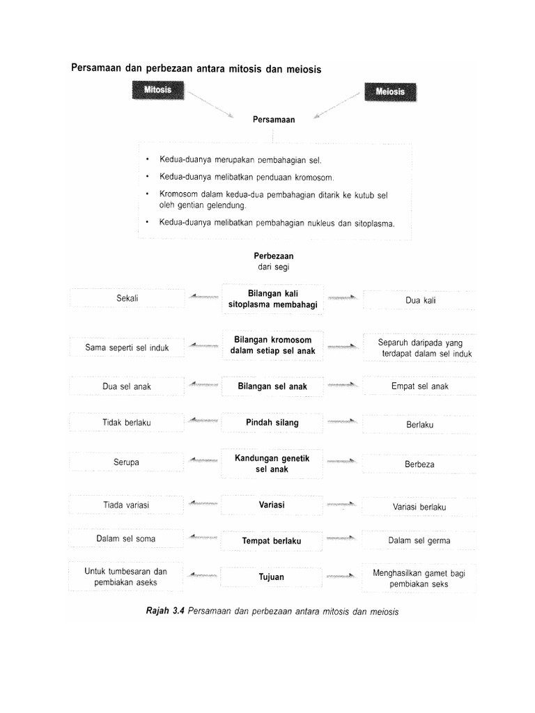 Perbezaan Mitosis Dan Meiosis Tingkatan 4