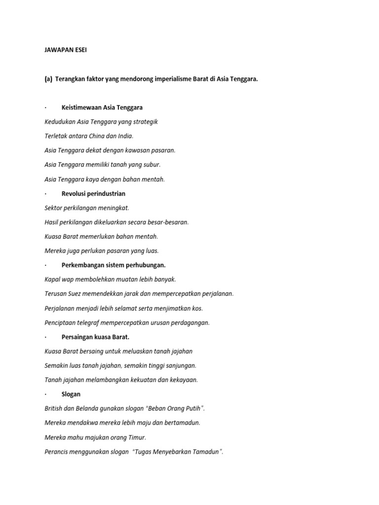 Faktor Imperialisme Barat Di Asia Tenggara Esei