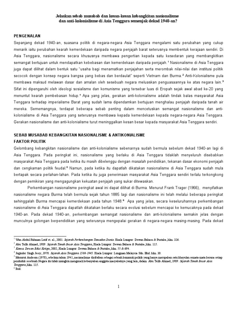 Nota Lengkap Kemunculan Dan Perkembangan Nasionalisme Di Asia Tenggara Spm Bab 1 Pendidikanmalaysia Com