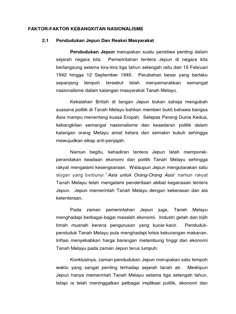 Faktor Kebangkitan Nasionalisme Di Tanah Melayu