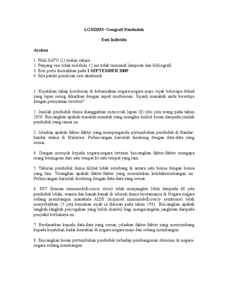 Lgm2033 Geografi Penduduk Esei Individu Arahan