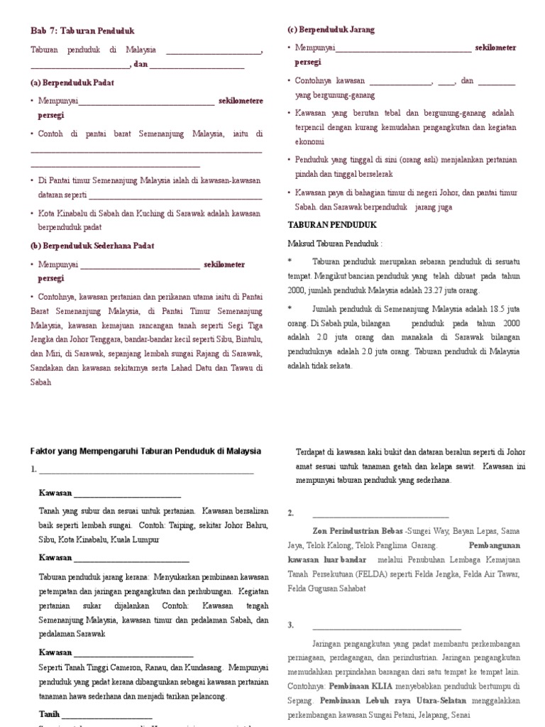 Geografi Tingkatan 2 Nota Bab 7 Taburan Penduduk