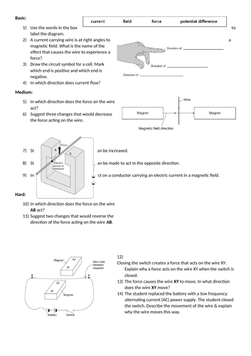 Fleming S Left Hand Rule Motor Effect Worksheets 3 With Answers Teaching Resources