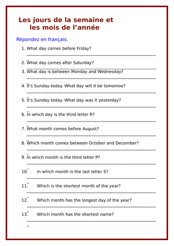 Les Jours Les Mois The Days Of The Week The Months Of The Year Teaching Resources